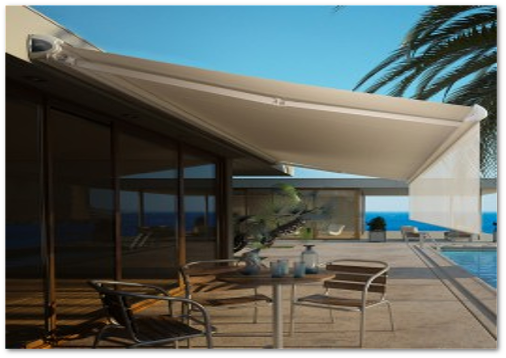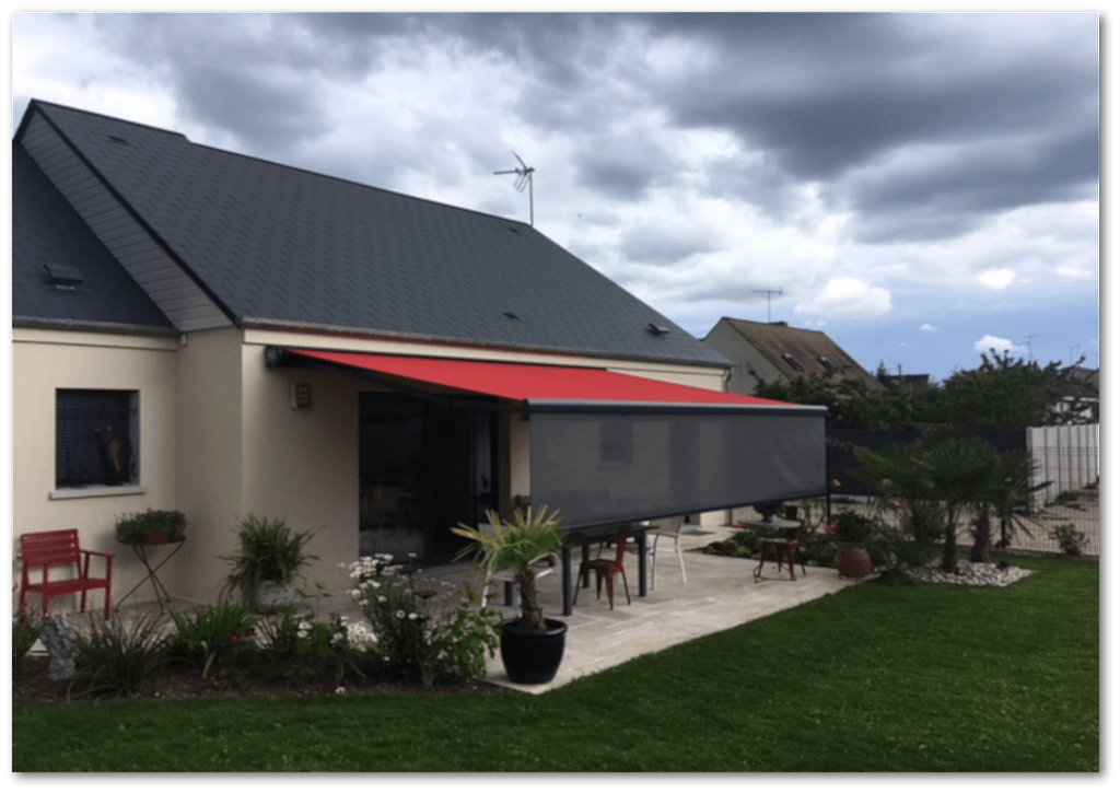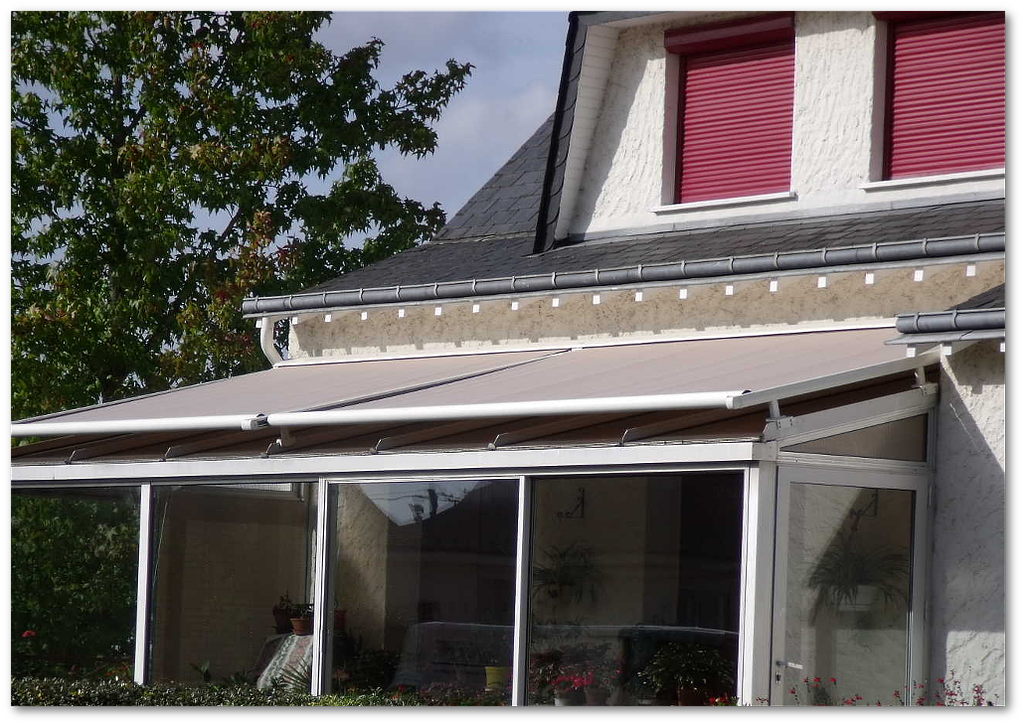 - store sur toiture de véranda avec coffre et coulisses, idéal pour vous protéger des rayons solaires et diminuer la température à l'intérieur de votre véranda